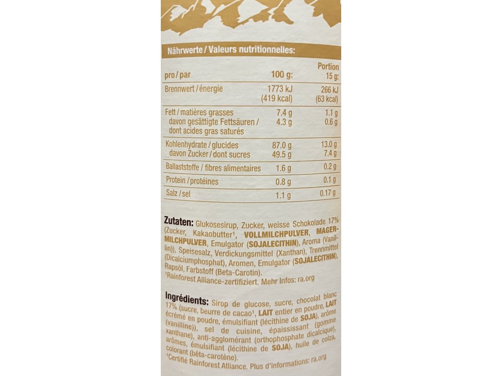 - obsahuje 17% originálnej švajčiarskej čokolády