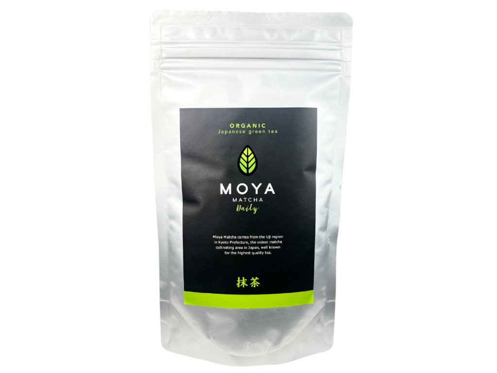 Moya Matcha je práškový zelený čaj prvotriednej kvality získaný z čajových rastlín, ktoré sú pred zberom špeciálne zatienené pred priamym slnečným žiarením. Výsledkom je vyšší obsah chlorofylu a antioxidantov a bohatšia, zelenšia farba. Po zbere sa čerstvé listy sušia a rozomelú na prášok. Na rozdiel od bežného čaju, keď pijeme matcha, konzumujeme celý čajový lístok a týmto spôsobom dodávame nášmu telu všetky živiny obsiahnuté v matcha čaji, vrátane tých, ktoré sú nerozpustné.