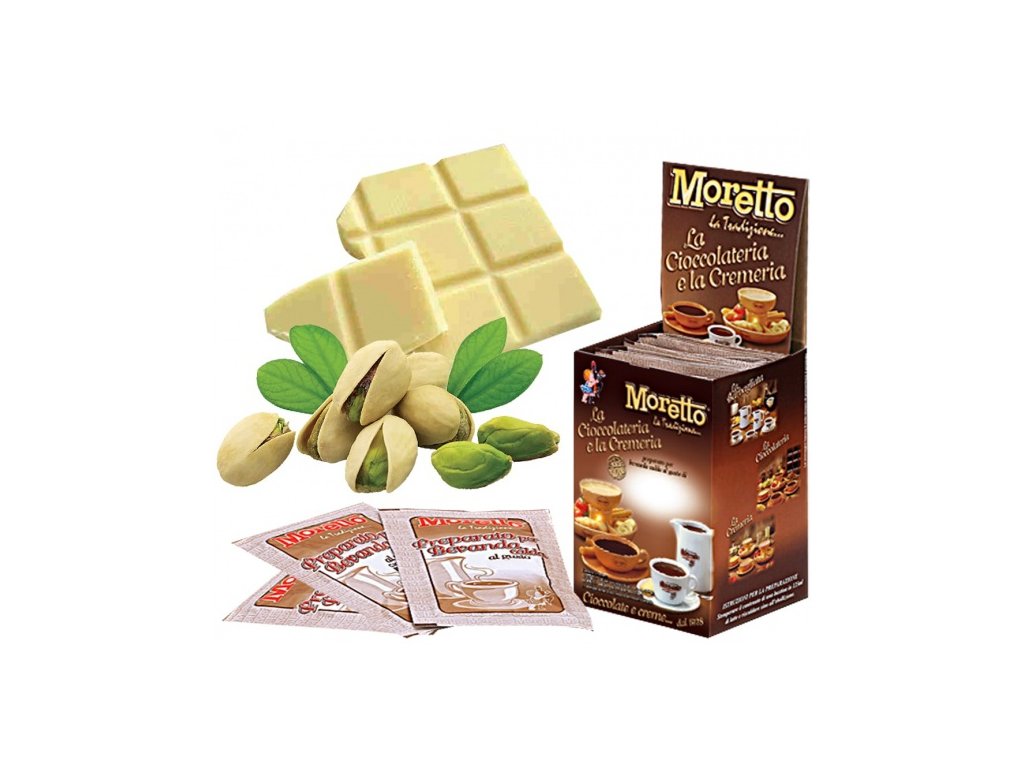 Horúca čokoláda Moretto - príchuť biela čokoláda + pistácie - porciovaná 1ks x 30 g